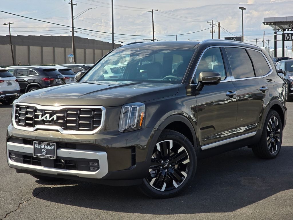 Dark Moss 2025 Kia Telluride SX-Prestige 3.8L V6 DOHC 8-Speed Automatic AWD 4D Sport Utility 10 Speakers, 3rd row seats: split-bench, 4-Wheel Disc Brakes, ABS brakes, Air Conditioning, Alloy wheels, AM/FM radio: SiriusXM, Apple CarPlay & Android Auto, Auto High-beam Headlights, Auto-dimming Rear-View mirror, Auto-leveling suspension, Automatic temperature control, Brake assist, Bumpers: body-color, Carpeted Floor Mats, Compass, Delay-off headlights, Driver door bin, Driver vanity mirror, Dual front impact airbags, Dual front side impact airbags, Electronic Stability Control, Emergency communication system: 911 Connect, Exterior Parking Camera Rear, Four wheel independent suspension, Front anti-roll bar, Front Bucket Seats, Front Center Armrest, Front dual zone A/C, Front fog lights, Front reading lights, Fully automatic headlights, Garage door transmitter: HomeLink, harman/kardon® Speakers, Heads-Up Display, Heated & Ventilated Front Bucket Seats, Heated door mirrors, Heated front seats, Heated rear seats, Heated steering wheel, Illuminated entry, Knee airbag, Leather Shift Knob, Leather steering wheel, Low tire pressure warning, Mahogany Interior Color Package, Memory seat, Nappa Leather Seat Trim, Navigation System, Occupant sensing airbag, Outside temperature display, Overhead airbag, Overhead console, Panic alarm, Passenger door bin, Passenger vanity mirror, Power door mirrors, Power driver seat, Power Liftgate, Power moonroof, Power passenger seat, Power steering, Power windows, Radio data system, Radio: AM/FM Harman Kardon Audio System, Rain sensing wipers, Rear air conditioning, Rear anti-roll bar, Rear audio controls, Rear reading lights, Rear side impact airbag, Rear window defroster, Rear window wiper, Reclining 3rd row seat, Remote keyless entry, Security system, Speed control, Speed-sensing steering, Split folding rear seat, Spoiler, Steering wheel mounted audio controls, Tachometer, Telescoping steering wheel, Tilt steering wheel, Tow Hitch w/Cover, Traction control, Trip computer, Turn signal indicator mirrors, Variably intermittent wipers, Ventilated front seats, Ventilated rear seats, Wheels: 20" x 7.5" Black Finish. Price includes: $1500 - KFA Dealer Choice Program: $1500 discount and 5.50% APR for 36 months. $30.20 per $1000 financed. Available to well qualified buyers who finance through Kia Finance America. 506. Exp. 11/03/2025