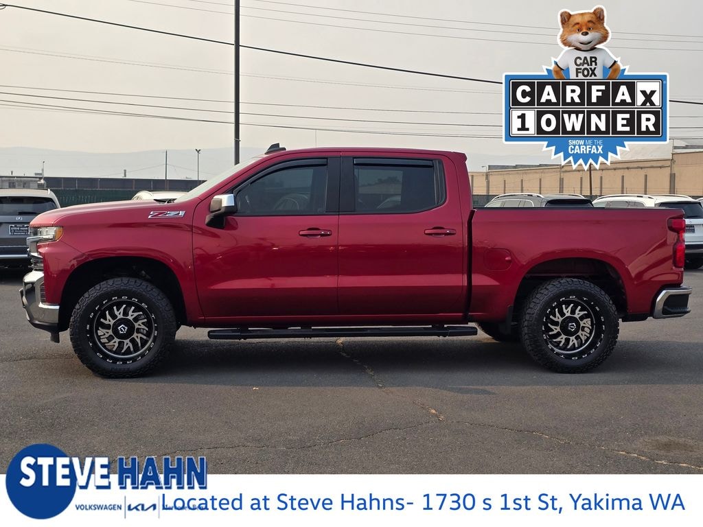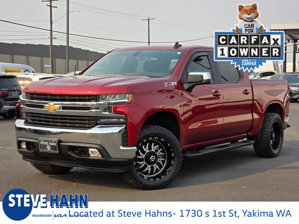 CARFAX One-Owner. Cajun Red Tintcoat 2019 Chevrolet Silverado 1500 LT EcoTec3 5.3L V8 8-Speed Automatic 4WD 4D Crew Cab 8-Speed Automatic, 4WD, Black Cloth, 10-Way Power Driver Seat w/Lumbar, 12-Volt Rear Auxiliary Power Outlet, 170 Amp Alternator, 2 USB Ports (First Row), 220 Amps Alternator, 3.23 Rear Axle Ratio, 4-Way Manual Driver Seat Adjuster, 4-Wheel Disc Brakes, 4.2" Diagonal Color Display Driver Info Center, 40/20/40 Front Split Bench Seat, 40/20/40 Front Split-Bench Seat, 6 Speakers, ABS brakes, Air Conditioning, All-Star Edition, Alloy wheels, AM/FM radio, Apple CarPlay/Android Auto, Auxiliary External Transmission Oil Cooler, Bluetooth® For Phone, Brake assist, Bumpers: chrome, Chevrolet Connected Access, Chevrolet w/4G LTE, Chrome Grille, Chrome Mirror Caps, Cloth Seat Trim, Color-Keyed Carpeting Floor Covering, Compass, Convenience Package, Deep-Tinted Glass, Delay-off headlights, Driver door bin, Driver vanity mirror, Dual Exhaust w/Polished Outlets, Dual front impact airbags, Dual front side impact airbags, Dual-Zone Automatic Climate Control, Electric Rear-Window Defogger, Electrical Lock Control Steering Column, Electronic Cruise Control, Electronic Stability Control, External Engine Oil Cooler, EZ Lift Power Lock & Release Tailgate, Front anti-roll bar, Front Center Armrest w/Storage, Front Frame-Mounted Black Recovery Hooks, Front License Plate Kit, Front reading lights, Front Rubberized Vinyl Floor Mats, Front wheel independent suspension, Fully automatic headlights, Heated door mirrors, Heated Driver & Front Passenger Seats, Heated Steering Wheel, Heavy Duty Suspension, Heavy-Duty Rear Locking Differential, High Capacity Air Filter, Hill Descent Control, Hitch Guidance, Illuminated entry, Integrated Trailer Brake Controller, Keyless Open & Start, Leather Wrapped Steering Wheel, LED Cargo Area Lighting, Locking Tailgate, Low tire pressure warning, Manual Tilt Wheel Steering Column, Manual Tilt/Telescoping Steering Column, Occupant sensing airbag, Off-Road Suspension, OnStar & Chevrolet Connected Services Capable, Outside temperature display, Overhead airbag, Overhead console, Panic alarm, Passenger door bin, Passenger vanity mirror, Power Door Locks, Power door mirrors, Power Front Windows w/Driver Express Up/Down, Power Front Windows w/Passenger Express Down, Power Rear Windows w/Express Down, Power steering, Power windows, Preferred Equipment Group 1LT, Premium audio system: Chevrolet Infotainment System 3, Radio data system, Radio: Chevrolet Infotainment 3 System, Rear 60/40 Folding Bench Seat (Folds Up), Rear Dual USB Charging-Only Ports, Rear reading lights, Rear Rubberized-Vinyl Floor Mats, Rear step bumper, Rear Vision Camera, Remote Keyless Entry, Remote keyless entry, Remote Vehicle Starter System, Single-Zone Manual/Semi-Automatic Air Conditioning, Speed control, Speed-sensing steering, Split folding rear seat, Steering Wheel Audio Controls, Steering wheel mounted audio controls, Tachometer, Theft Deterrent System (Unauthorized Entry), Tilt steering wheel, Traction control, Trailering Package, Trip computer, Urethane Steering Wheel, Variably intermittent wipers, Voltmeter, Wheels: 17" x 8" Bright Silver Painted Aluminum, Wheels: 20" x 9" Painted Aluminum, Z71 Off-Road Package, 8-Speed Automatic, 4WD, Black Cloth.