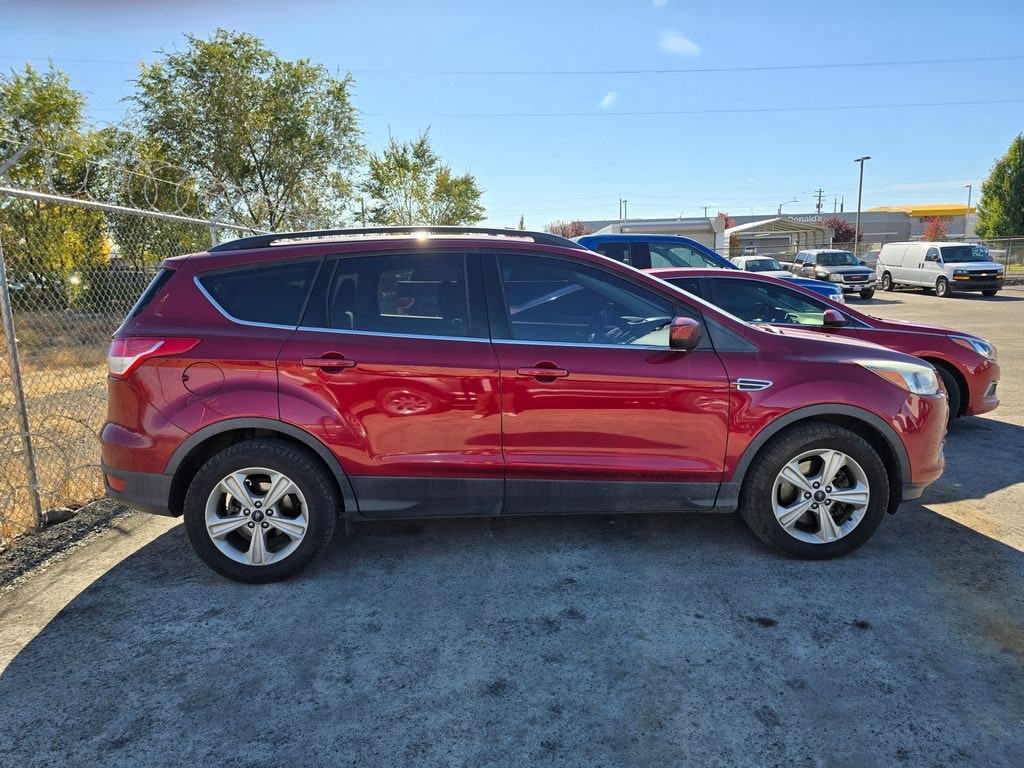 Ruby Red Metallic 2016 Ford Escape SE EcoBoost 1.6L I4 GTDi DOHC Turbocharged VCT 6-Speed Automatic 4WD 4D Sport Utility 4WD, 3.51 Axle Ratio, 4-Wheel Disc Brakes, 6 Speakers, ABS brakes, Air Conditioning, Alloy wheels, AM/FM radio: SiriusXM, Black Roof-Rack Side Rails, Brake assist, Bumpers: body-color, CD player, Cloth Buckets w/60/40 Split Rear Seat, Compass, Delay-off headlights, Driver door bin, Driver vanity mirror, Dual front impact airbags, Dual front side impact airbags, Dual Zone Electronic Automatic Temperature Control, Electronic Stability Control, Emergency communication system: 911 Assist, Equipment Group 201A, Exterior Parking Camera Rear, Four wheel independent suspension, Front anti-roll bar, Front Bucket Seats, Front Center Armrest, Front fog lights, Front reading lights, Fully automatic headlights, Illuminated entry, Knee airbag, Low tire pressure warning, Occupant sensing airbag, Outside temperature display, Overhead airbag, Overhead console, Panic alarm, Passenger door bin, Passenger vanity mirror, Perimeter Alarm, Power Converter 110V Outlet, Power door mirrors, Power driver seat, Power steering, Power windows, Radio data system, Radio: AM/FM Single CD/MP3, Radio: Media Hub w/SYNC 3, Rear anti-roll bar, Rear seat center armrest, Rear window defroster, Rear window wiper, Remote keyless entry, Reverse Sensing System, SE Convenience Package, Speed control, Speed-sensing steering, Split folding rear seat, Steering wheel mounted audio controls, SYNC 3 Communications & Entertainment System, SYNC Communications & Entertainment System, Tachometer, Telescoping steering wheel, Tilt steering wheel, Traction control, Trip computer, Variably intermittent wipers, Wheels: 17" Alloy Sparkle Silver Painted Alloy, 4WD.