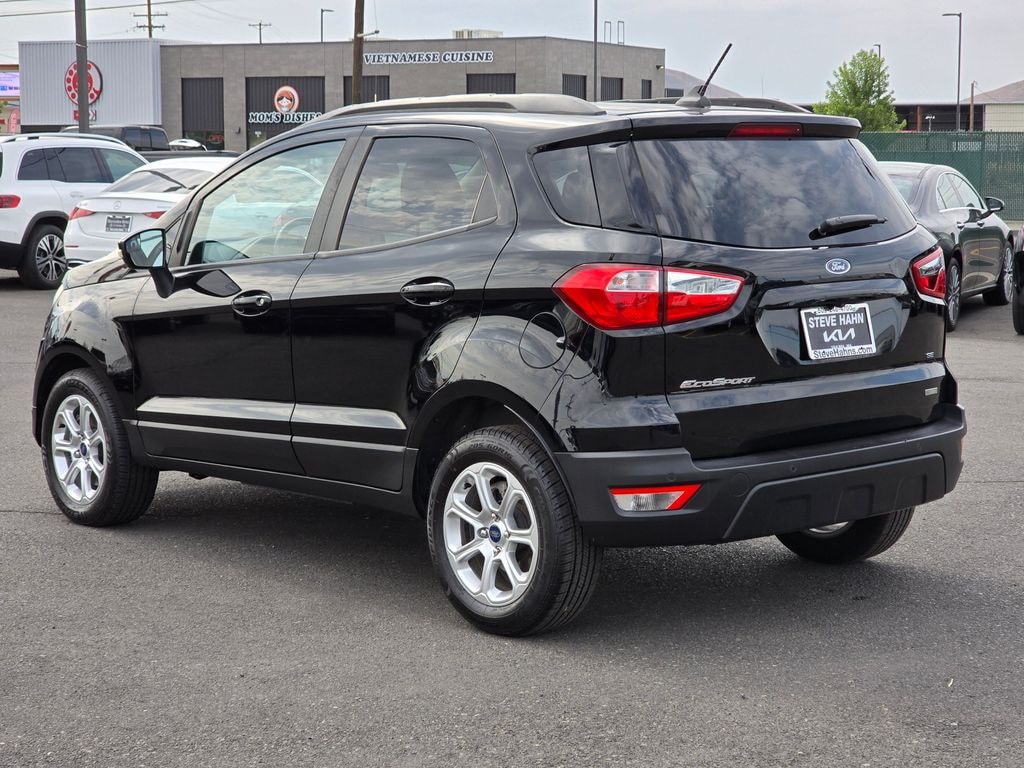 CARFAX One-Owner. Shadow Black 2020 Ford EcoSport SE EcoBoost 1.0L I3 GTDi DOHC Turbocharged VCT 6-Speed Automatic FWD 4D Sport Utility 3.44 Axle Ratio, 4-Wheel Disc Brakes, 6 Speakers, ABS brakes, Air Conditioning, Alloy wheels, AM/FM radio: SiriusXM, AppLink/Apple CarPlay and Android Auto, Automatic temperature control, Brake assist, Bumpers: body-color, Compass, Delay-off headlights, Driver door bin, Driver vanity mirror, Dual front impact airbags, Dual front side impact airbags, Electronic Stability Control, Emergency communication system: SYNC 3 911 Assist, Equipment Group 200A, Exterior Parking Camera Rear, Front anti-roll bar, Front Bucket Seats, Front Center Armrest, Front fog lights, Front reading lights, Front wheel independent suspension, Fully automatic headlights, Heated front seats, Illuminated entry, Knee airbag, Leather Shift Knob, Leather steering wheel, Low tire pressure warning, Occupant sensing airbag, Outside temperature display, Overhead airbag, Overhead console, Panic alarm, Passenger door bin, Passenger vanity mirror, Power door mirrors, Power driver seat, Power moonroof, Power steering, Power windows, Radio data system, Radio: AM/FM Stereo w/MP3 Capable, Rear Parking Sensors, Rear seat center armrest, Rear side impact airbag, Rear window defroster, Rear window wiper, Remote keyless entry, Roof rack: rails only, SiriusXM Radio, Speed control, Speed-sensing steering, Split folding rear seat, Steering wheel mounted audio controls, SYNC 3 Communications & Entertainment System, Tachometer, Telescoping steering wheel, Tilt steering wheel, Tire Inflator & Sealant Kit, Traction control, Trip computer, Turn signal indicator mirrors, Unique Cloth Heated Front Bucket Seats, Variably intermittent wipers, Wheels: 16" Shadow Silver-Painted Aluminum.