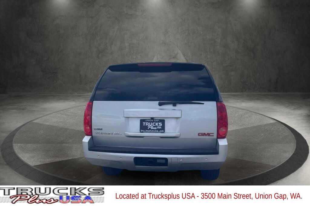 Recent Arrival! Quicksilver Metallic 2012 GMC Yukon XL SLT 1500 Vortec 5.3L V8 SFI Flex Fuel 6-Speed Automatic HD Electronic with Overdrive 4WD 4D Sport Utility 4WD, 17" x 7.5" Bright Aluminum Sport Wheels, 2-Position Driver Seat Memory, 2-Speed Active Electronic AutoTrac Transfer Case, 2nd Row Power Seat Release Only, 3rd Row DVD Screen, 3rd row seats: split-bench, 4-Wheel Disc Brakes, 6-Way Power Driver Seat Adjuster, 6-Way Power Front Passenger Seat Adjuster, 9 Speakers, ABS brakes, Adjustable pedals, Air Conditioning, Alloy wheels, AM/FM radio: SiriusXM, AM/FM Stereo w/CD/MP3 Playback, Auto-dimming Rear-View mirror, Automatic temperature control, Body-Color Power-Adjustable Heated Outside Mirrors, Bodyside moldings, Bumpers: body-color, CD player, Color-Keyed Heated Leather-Wrapped Steering Wheel, Compass, Delay-off headlights, Driver door bin, Driver Manual Lumbar Control, Driver vanity mirror, Dual front impact airbags, Dual front side impact airbags, Electronic Stability Control, Emergency communication system: OnStar Directions & Connections, Exterior Parking Camera Rear, Floor Console, Front anti-roll bar, Front Bucket Seats, Front Center Armrest, Front dual zone A/C, Front fog lights, Front Full-Feature Reclining Bucket Seats, Front High-Back Reclining Heated Bucket Seats, Front License Plate Bracket, Front reading lights, Front wheel independent suspension, Fully automatic headlights, Garage door transmitter, Heated & Cooled Driver & Front Passenger Seats, Heated 2nd Row Seats, Heated door mirrors, Heated front seats, Heavy-Duty Air-to-Oil Auxiliary Transmission Oil Cooler, Heavy-Duty Air-to-Oil External Engine Oil Cooler, Heavy-Duty Trailering Package, Illuminated entry, Low tire pressure warning, Occupant sensing airbag, Off-Road Suspension Package, Outside temperature display, Overhead airbag, Overhead console, Panic alarm, Passenger door bin, Passenger vanity mirror, Power door mirrors, Power driver seat, Power passenger seat, Power steering, Power Tilt-Sliding Sunroof w/Express-Open/Close, Power windows, Premium Smooth Ride Suspension Package, Radio data system, Radio: AM/FM Stereo w/MP3 Compatible CD/DVD, Rear air conditioning, Rear anti-roll bar, Rear audio controls, Rear Power-Operated Liftgate, Rear reading lights, Rear seat center armrest, Rear Vision Camera, Rear window defroster, Rear window wiper, Rear-Seat DVD Player Entertainment System, Remote keyless entry, Roof rack, Security system, SIRIUSXM Satellite Radio, Skid Plate Package, SLT-1 Marketing Option Package, SLT-2 Equipment Package, Speed control, Split folding rear seat, Spoiler, Steering wheel mounted audio controls, Tachometer, Tilt steering wheel, Traction control, Trip computer, Ultrasoft Leather-Appointed Seat Trim, USB Port, Variably intermittent wipers, Voltmeter, 4WD.