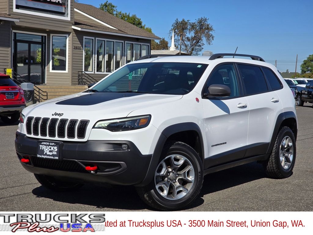 Recent Arrival! Bright White Clearcoat 2019 Jeep Cherokee Trailhawk 2.0L I4 DOHC 9-Speed 948TE Automatic 4WD 4D Sport Utility 3.517 Axle Ratio, 3.734 Axle Ratio, 4-Wheel Disc Brakes, 6 Speakers, 8.4" Touchscreen Display, ABS brakes, Air Conditioning, Alloy wheels, AM/FM radio: SiriusXM, Anti-whiplash front head restraints, Apple CarPlay, Apple CarPlay/Android Auto, Automatic temperature control, AutoStick Automatic Transmission, Auxiliary Transmission Oil Cooler, Brake assist, Cloth/Premium Vinyl Bucket Seats, Cold Weather Group, Compass, Delay-off headlights, Driver door bin, Driver vanity mirror, Dual Bright Exhaust Tips, Dual front impact airbags, Dual front side impact airbags, Electronic Stability Control, Engine Block Heater, Engine Oil Cooler, Exterior Mirrors Courtesy Lamps, Exterior Mirrors w/Supplemental Signals, Four wheel independent suspension, Front anti-roll bar, Front Bucket Seats, Front Center Armrest, Front dual zone A/C, Front fog lights, Front License Plate Bracket (DISC), Front reading lights, Fully automatic headlights, Google Android Auto, GPS Antenna Input, Heated door mirrors, Heated Front Seats, Heated Steering Wheel, Hill Descent Control, Illuminated entry, Integrated Voice Command w/Bluetooth, Knee airbag, Leather Shift Knob, Low tire pressure warning, Manufacturer's Statement of Origin (DISC), Occupant sensing airbag, Off Road Suspension, Outside temperature display, Overhead airbag, Overhead console, Panic alarm, ParkView Rear Back-Up Camera, Passenger door bin, Passenger vanity mirror, Power door mirrors, Power driver seat, Power steering, Power windows, Quick Order Package 2ZE Trailhawk, Radio data system, Radio: Uconnect 4 w/8.4" Display, Rear anti-roll bar, Rear reading lights, Rear seat center armrest, Rear side impact airbag, Rear window defroster, Rear window wiper, Remote keyless entry, Roof rack: rails only, SiriusXM Satellite Radio, Speed control, Speed-sensing steering, Split folding rear seat, Spoiler, Steering wheel mounted audio controls, Stop-Start Multiple VSM System, Tachometer, Telescoping steering wheel, Tilt steering wheel, Traction control, Trip computer, Turn signal indicator mirrors, USB Host Flip, Variably intermittent wipers, Voltmeter, Wheels: 17" x 7.5" Painted/Polished Aluminum, Windshield Wiper De-Icer.