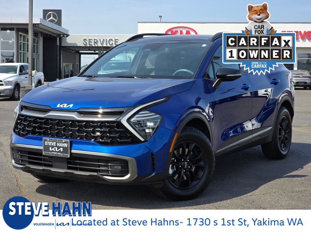 Recent Arrival! Clean CARFAX. Sapphire Blue 2024 Kia Sportage X-Pro I4 8-Speed Automatic AWD 4D Sport Utility AWD, 4-Wheel Disc Brakes, 8 Speakers, ABS brakes, Air Conditioning, Alloy wheels, AM/FM radio: SiriusXM, Apple CarPlay & Android Auto, Auto High-beam Headlights, Automatic temperature control, Axle Ratio: 3.648, Brake assist, Bumpers: body-color, Carpeted Floor Mats, Compass, Delay-off headlights, Driver door bin, Driver vanity mirror, Dual front impact airbags, Dual front side impact airbags, Electronic Stability Control, Emergency communication system, Four wheel independent suspension, Front anti-roll bar, Front Bucket Seats, Front Center Armrest, Front dual zone A/C, Front fog lights, Front reading lights, Fully automatic headlights, harman/kardon® Speakers, Heated door mirrors, Heated Front Bucket Seats, Heated front seats, Heated steering wheel, Illuminated entry, Leather Shift Knob, Leather steering wheel, Low tire pressure warning, Memory seat, Navigation System, Occupant sensing airbag, Outside temperature display, Overhead airbag, Overhead console, Panic alarm, Passenger door bin, Passenger vanity mirror, Power door mirrors, Power driver seat, Power Liftgate, Power moonroof, Power steering, Power windows, Premium Leatherette Seat Trim, Radio: AM/FM/HD Premium Audio System, Rain sensing wipers, Rear anti-roll bar, Rear reading lights, Rear seat center armrest, Rear side impact airbag, Rear window defroster, Rear window wiper, Remote keyless entry, Security system, Speed control, Speed-sensing steering, Split folding rear seat, Spoiler, Steering wheel mounted audio controls, Tachometer, Telescoping steering wheel, Tilt steering wheel, Traction control, Trip computer, Turn signal indicator mirrors, Variably intermittent wipers, Wheels: 17" Matte Black Alloy, AWD.