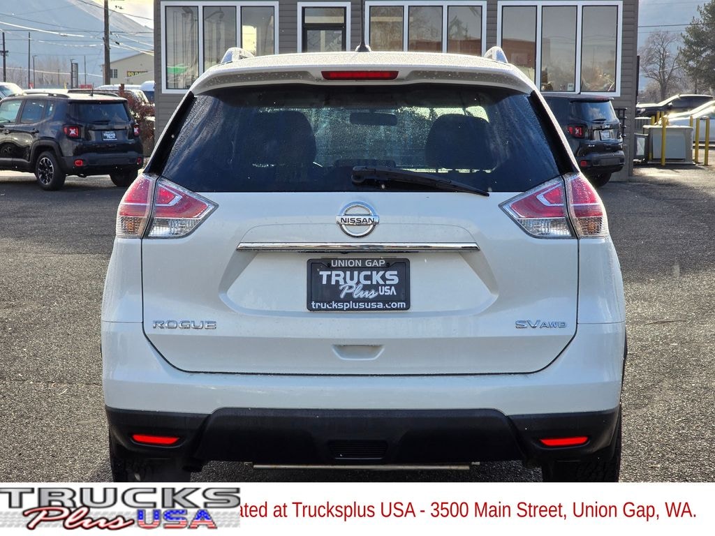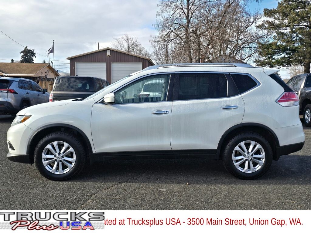 Recent Arrival! Pearl White 2015 Nissan Rogue SV 2.5L I4 DOHC 16V CVT with Xtronic AWD 4D Sport Utility AWD, 17" Aluminum Alloy Wheels, 4-Wheel Disc Brakes, 5.694 Axle Ratio, 6 Speakers, ABS brakes, Air Conditioning, Alloy wheels, AM/FM radio: SiriusXM, Anti-whiplash front head restraints, Automatic temperature control, Brake assist, Bumpers: body-color, CD player, Cloth Seat Trim, Delay-off headlights, Driver door bin, Driver vanity mirror, Dual front impact airbags, Dual front side impact airbags, Electronic Stability Control, Exterior Parking Camera Rear, Four wheel independent suspension, Front anti-roll bar, Front Bucket Seats, Front Center Armrest w/Storage, Front dual zone A/C, Front reading lights, Fully automatic headlights, Illuminated entry, Low tire pressure warning, Occupant sensing airbag, Outside temperature display, Overhead airbag, Overhead console, Panic alarm, Passenger door bin, Passenger vanity mirror, Power door mirrors, Power driver seat, Power Liftgate, Power steering, Power windows, Radio data system, Radio: AM/FM/CD/RDS/AUX NissanConnect, Radio: AM/FM/CD/RDS/AUX NissanConnect w/Navigation, Rear anti-roll bar, Rear window defroster, Rear window wiper, Remote keyless entry, Roof rack: rails only, Security system, Speed control, Speed-sensing steering, Split folding rear seat, Spoiler, Steering wheel mounted audio controls, Tachometer, Telescoping steering wheel, Tilt steering wheel, Traction control, Trip computer, Turn signal indicator mirrors, Variably intermittent wipers, AWD.