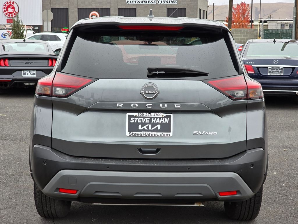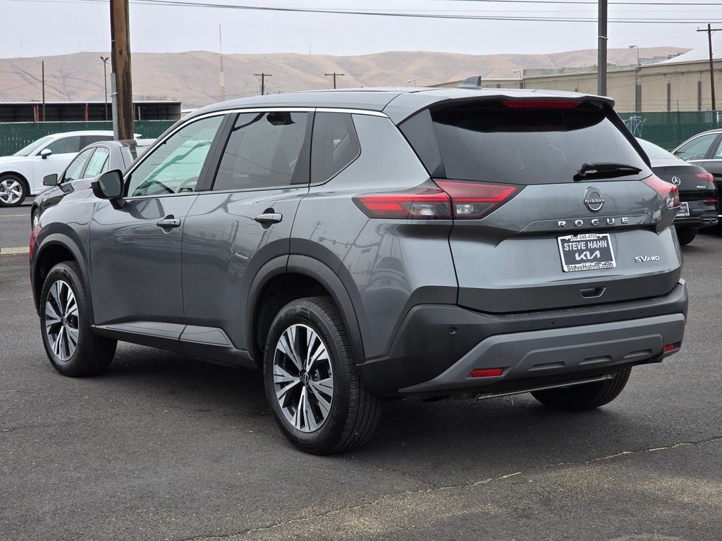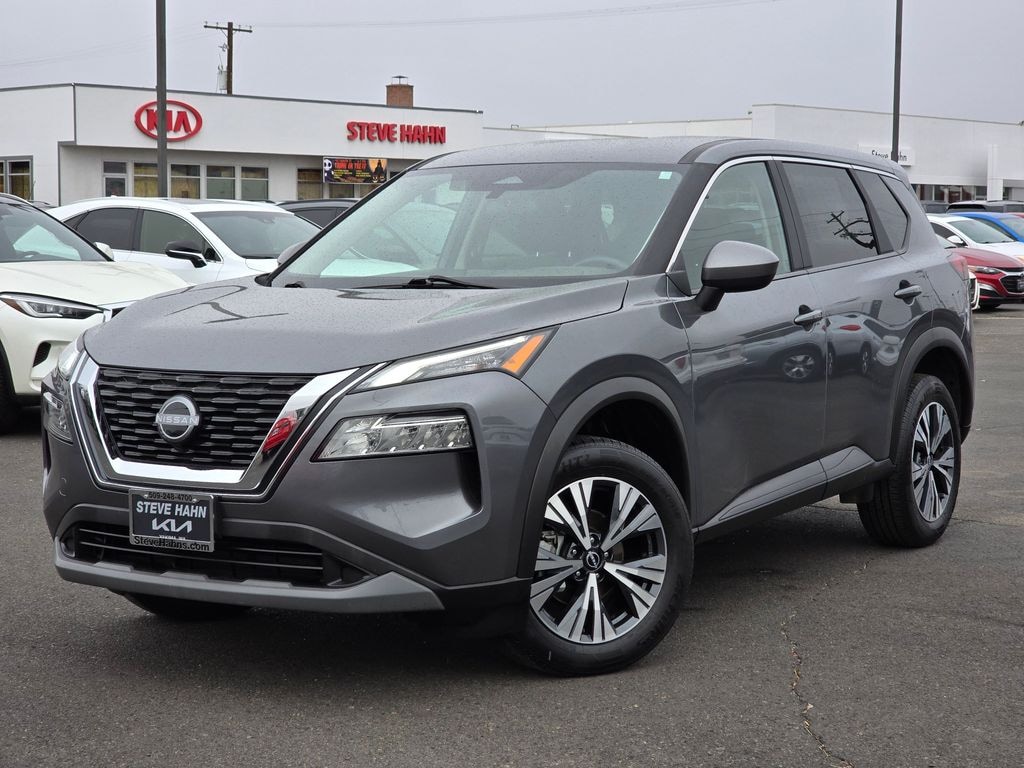 Gun Metallic 2023 Nissan Rogue SV 1.5L I3 Turbocharged DOHC 12V LEV3-ULEV50 201hp CVT with Xtronic AWD 4D Sport Utility AWD, 18" Aluminum Alloy Wheels, 4-Wheel Disc Brakes, 5.604 Axle Ratio, 6 Speakers, ABS brakes, Air Conditioning, Alloy wheels, AM/FM Radio, AM/FM radio: SiriusXM, Auto High-beam Headlights, Automatic temperature control, Brake assist, Bumpers: body-color, Cloth Seat Trim, Delay-off headlights, Driver door bin, Driver vanity mirror, Dual front impact airbags, Dual front side impact airbags, Electronic Stability Control, Emergency communication system: NissanConnect Services, First Aid Kit, Floor Mats w/1-Piece Cargo Area Protector, Four wheel independent suspension, Front anti-roll bar, Front Bucket Seats, Front Center Armrest, Front dual zone A/C, Front reading lights, Fully automatic headlights, Heated door mirrors, Illuminated entry, Knee airbag, Low tire pressure warning, NissanConnect featuring Apple CarPlay and Android Auto, Occupant sensing airbag, Outside temperature display, Overhead airbag, Overhead console, Panic alarm, Passenger door bin, Passenger vanity mirror, Power door mirrors, Power driver seat, Power steering, Power windows, Radio data system, Rear anti-roll bar, Rear Parking Sensors, Rear seat center armrest, Rear side impact airbag, Rear window defroster, Rear window wiper, Remote keyless entry, Speed control, Speed-Sensitive Wipers, Split folding rear seat, Spoiler, Steering wheel mounted audio controls, Tachometer, Telescoping steering wheel, Tilt steering wheel, Traction control, Trip computer, Variably intermittent wipers, AWD.